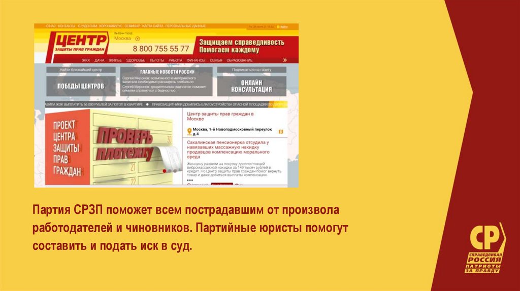 Партия СРЗП поможет всем пострадавшим от произволаработодателей и чиновников. Партийные юристы помогут