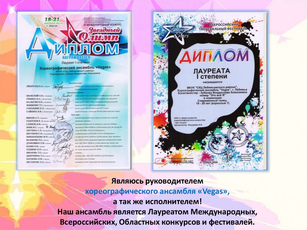 Являюсь руководителемхореографического ансамбля «Vegas»,