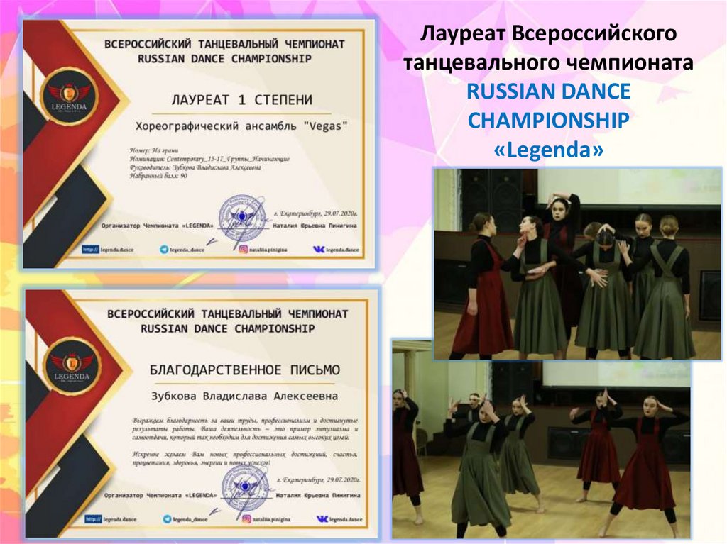 Лауреат Всероссийскоготанцевального чемпионата