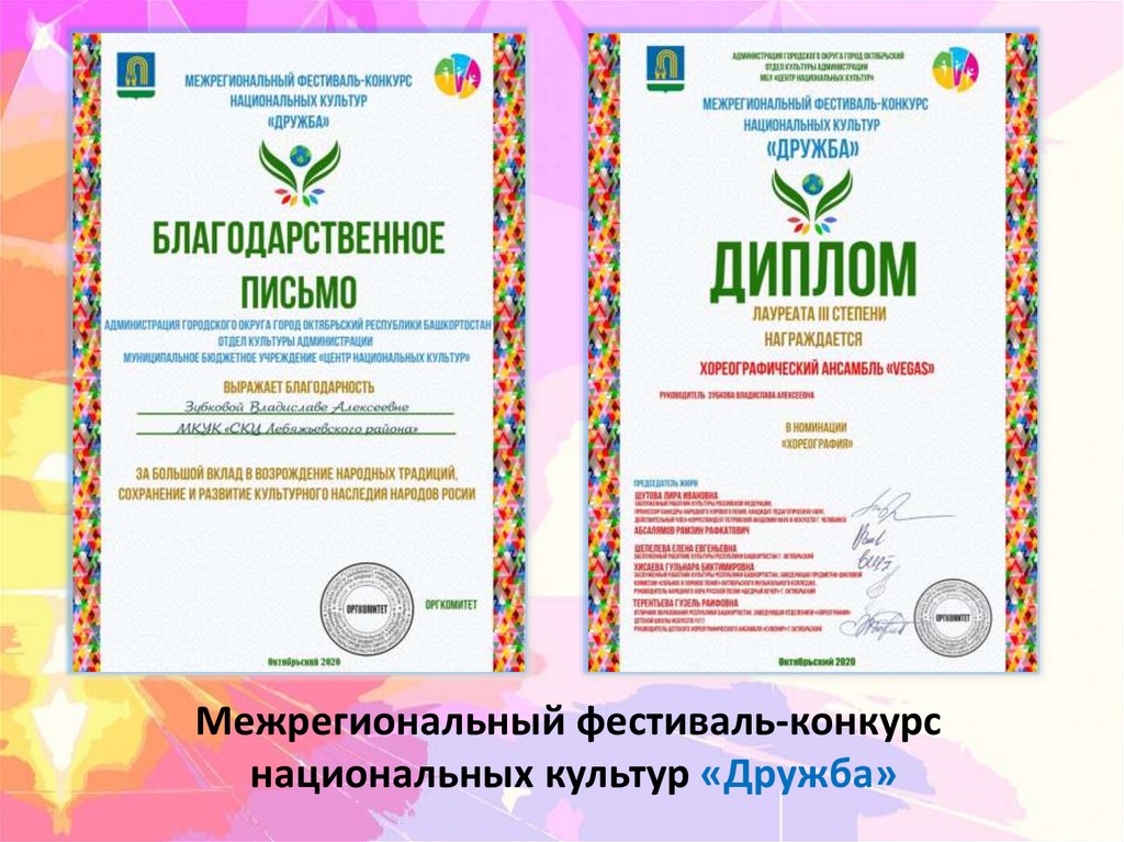 Всероссийских, Областных конкурсов и фестивалей.