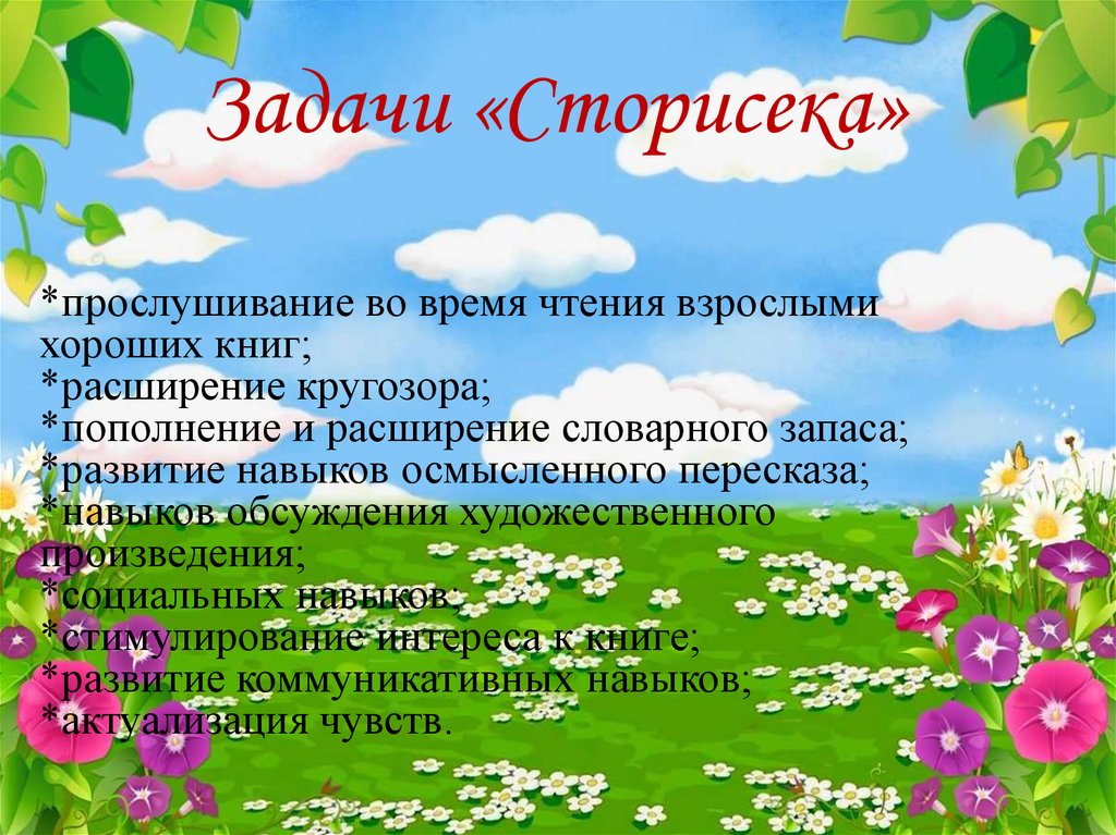 Задачи «Сторисека»*прослушивание во время чтения взрослыми