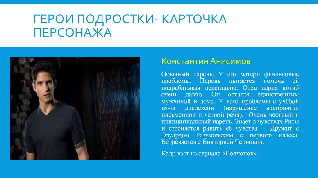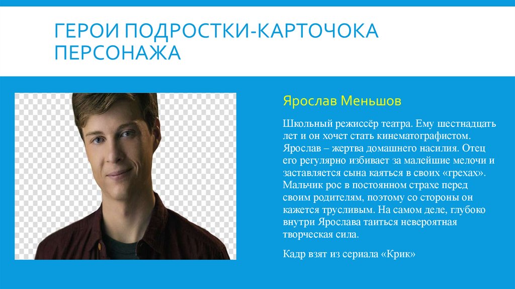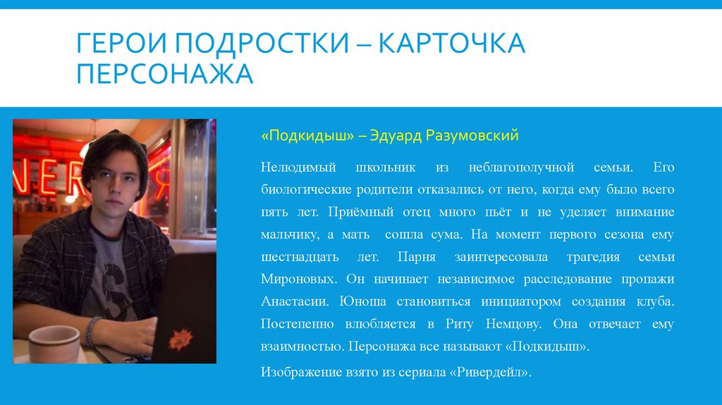 ГЕРОИ ПОДРОСТКИ-КАРТОЧКАПЕРСОНАЖА