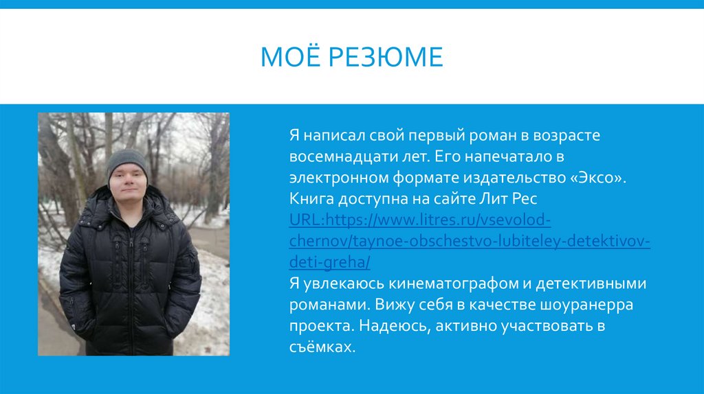 МОЁ РЕЗЮМЕЯ написал свой первый роман в возрасте