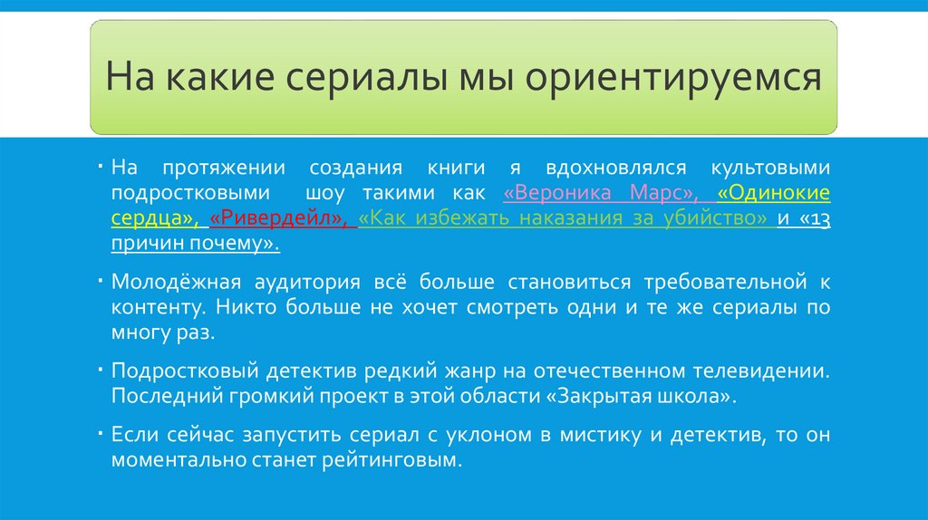 На какие сериалы мы ориентируемсяНа протяжении создания книги я вдохновлялся культовыми