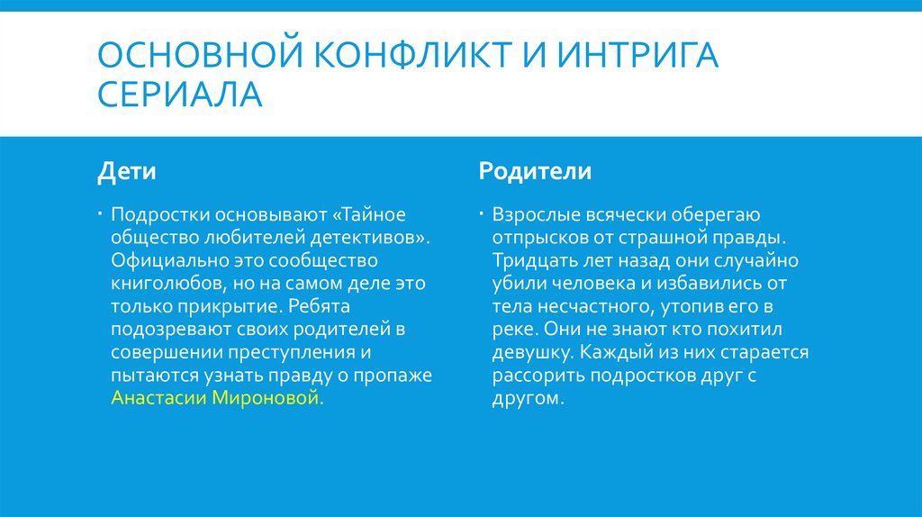 ОСНОВНОЙ КОНФЛИКТ И ИНТРИГАСЕРИАЛА