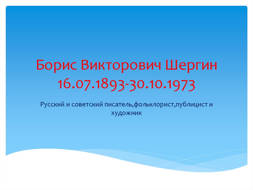 Борис Викторович Шергин16.07.1893-30.10.1973