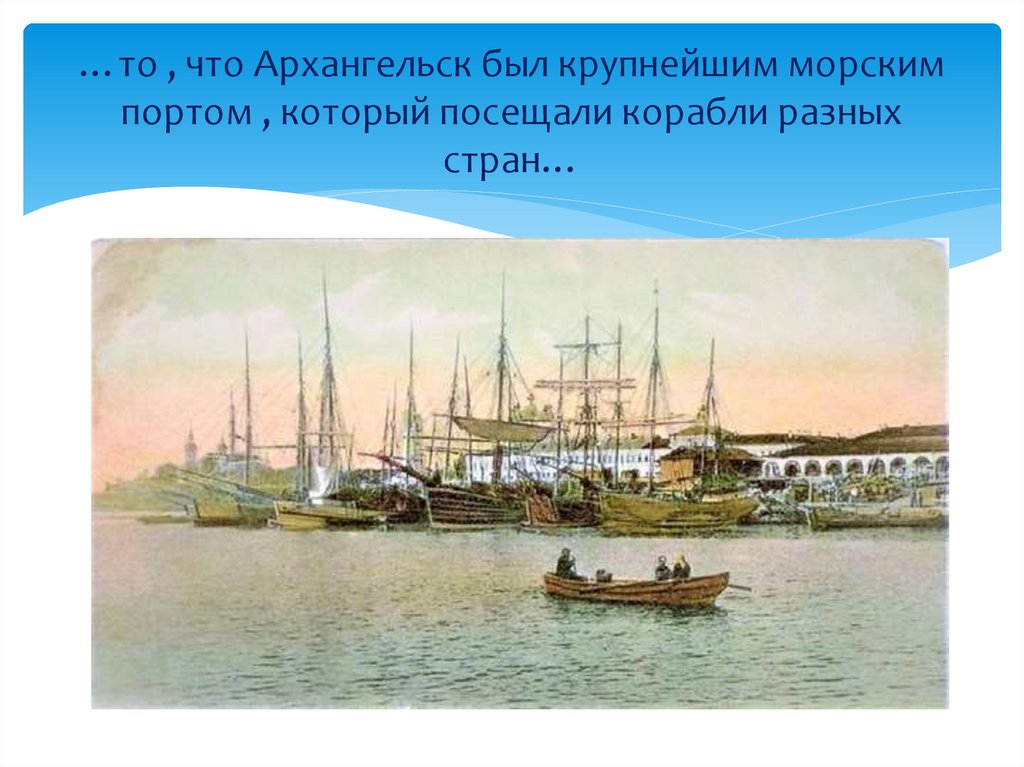 …то , что Архангельск был крупнейшим морскимпортом , который посещали корабли разных