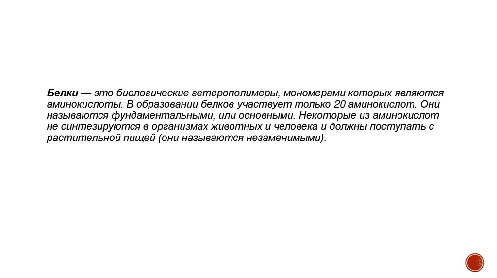 Белки — это биологические гетерополимеры, мономерами которых являютсяаминокислоты. В образовании белков участвует только 20 аминокислот. Они