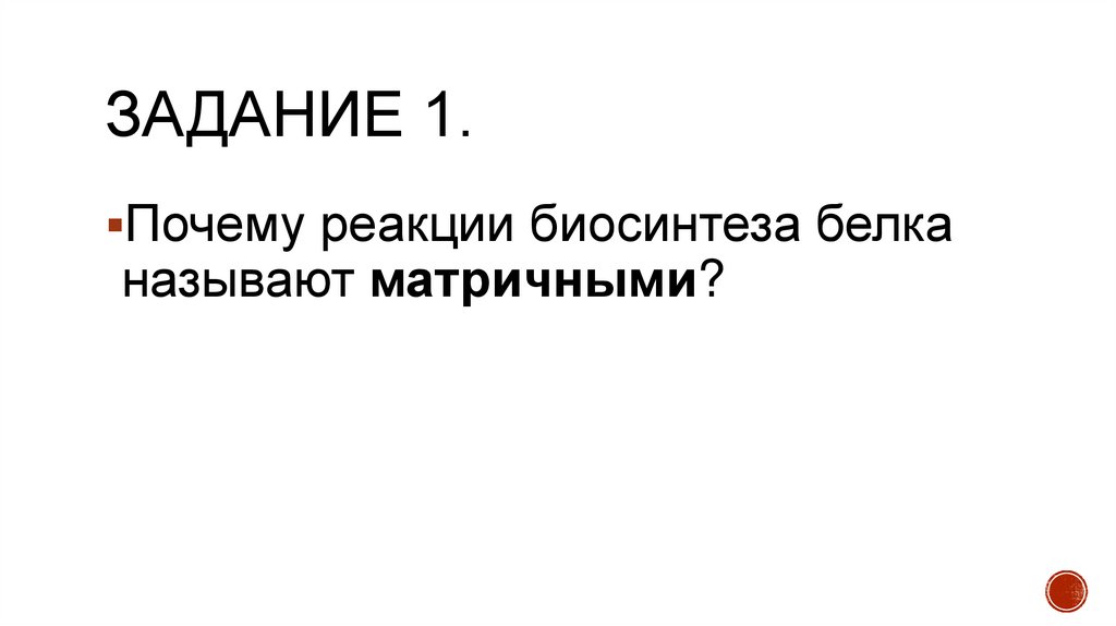 ЗАДАНИЕ 1.Почему реакции биосинтеза белка