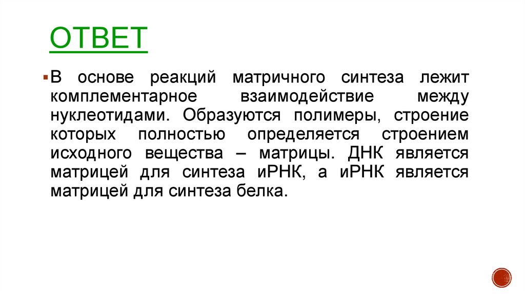 ЗАКРИПЛЕНИЕ«Биосинтез белка.