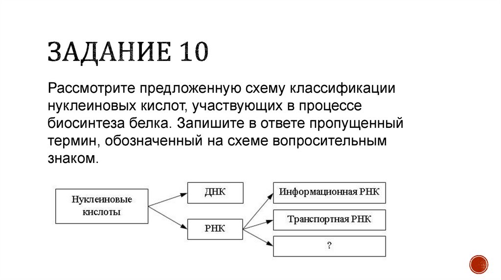 Рассмотрите предложенную схему классификациинуклеиновых кислот, участвующих в процессе