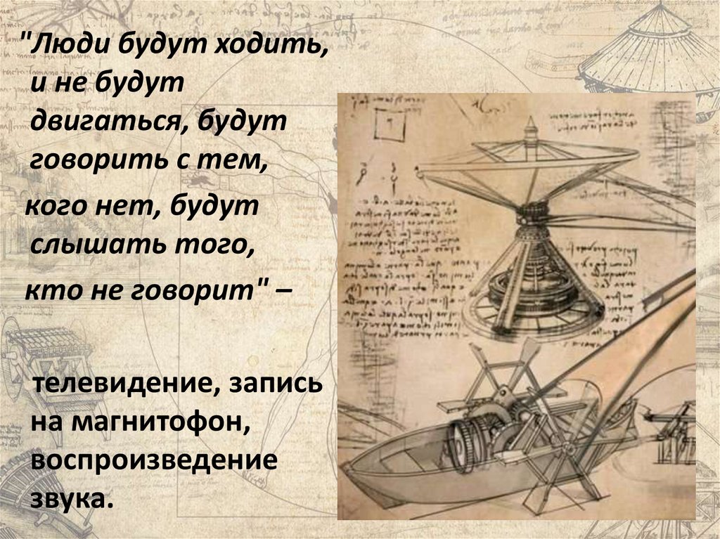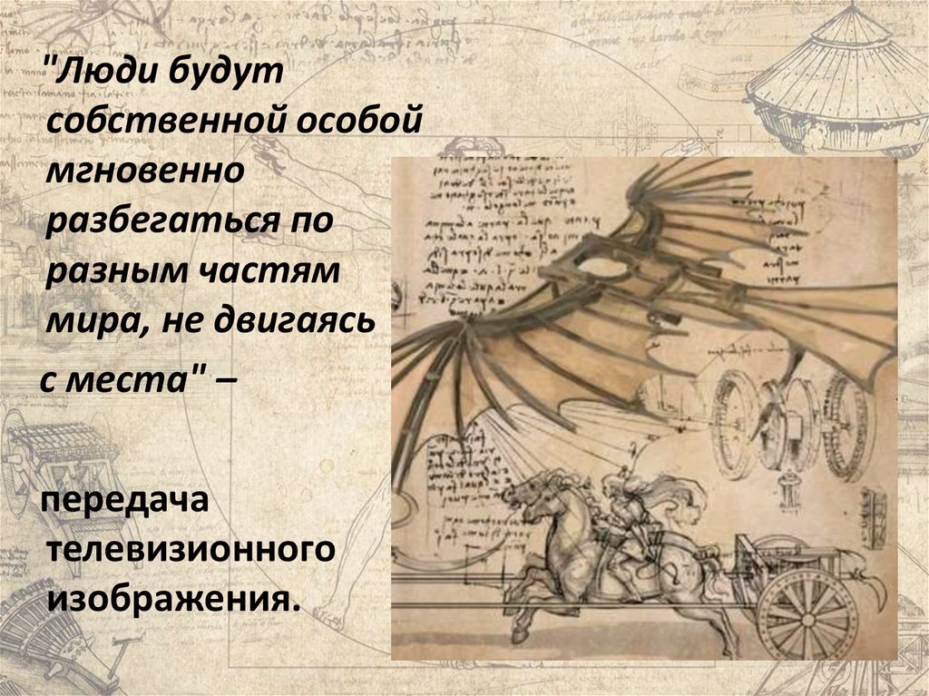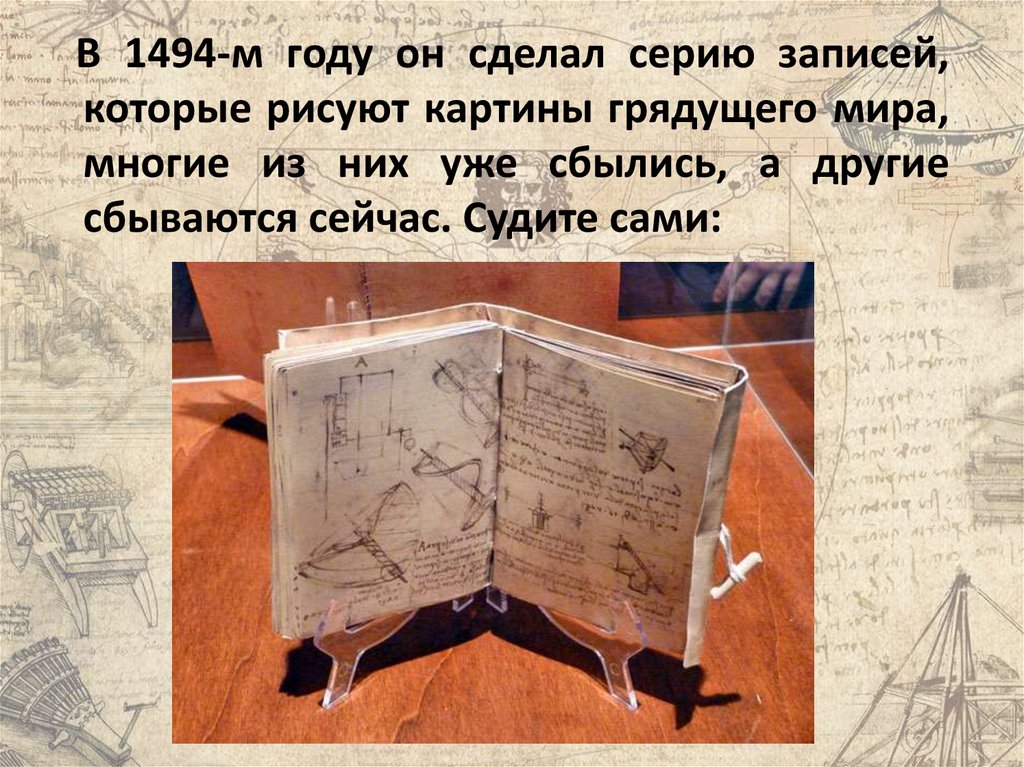 В 1494-м году он сделал серию записей,которые рисуют картины грядущего мира,