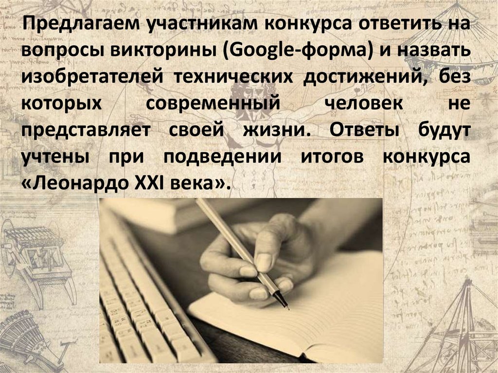 Предлагаем участникам конкурса ответить навопросы викторины (Google-форма) и назвать