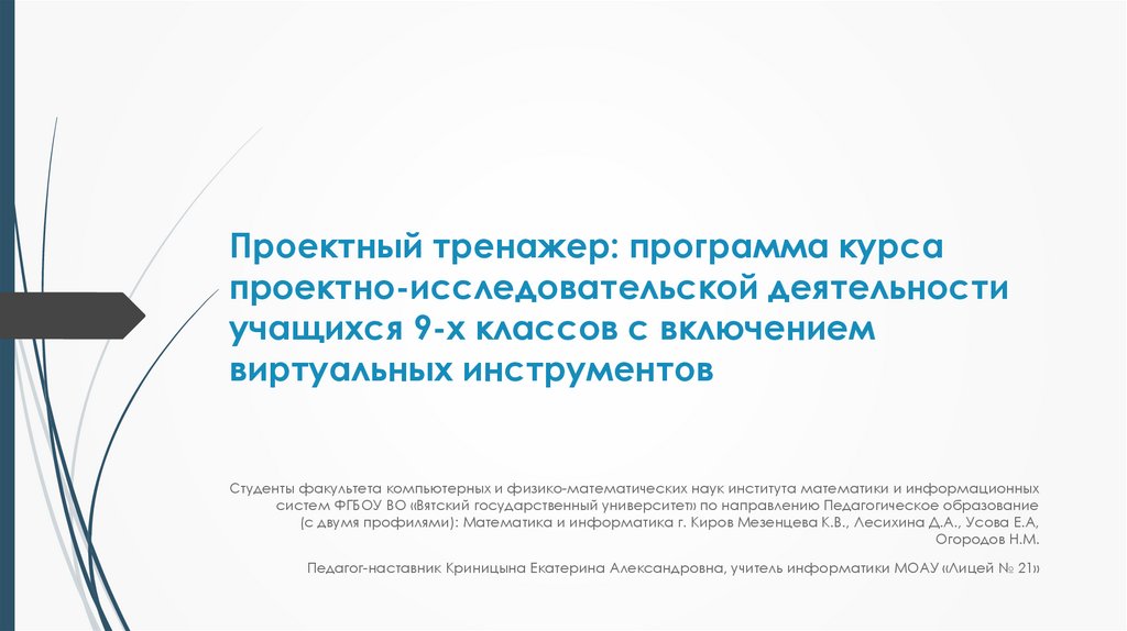 Проектный тренажер: Программа курса проектно-исследовательской деятельности учащихся 9-х классов