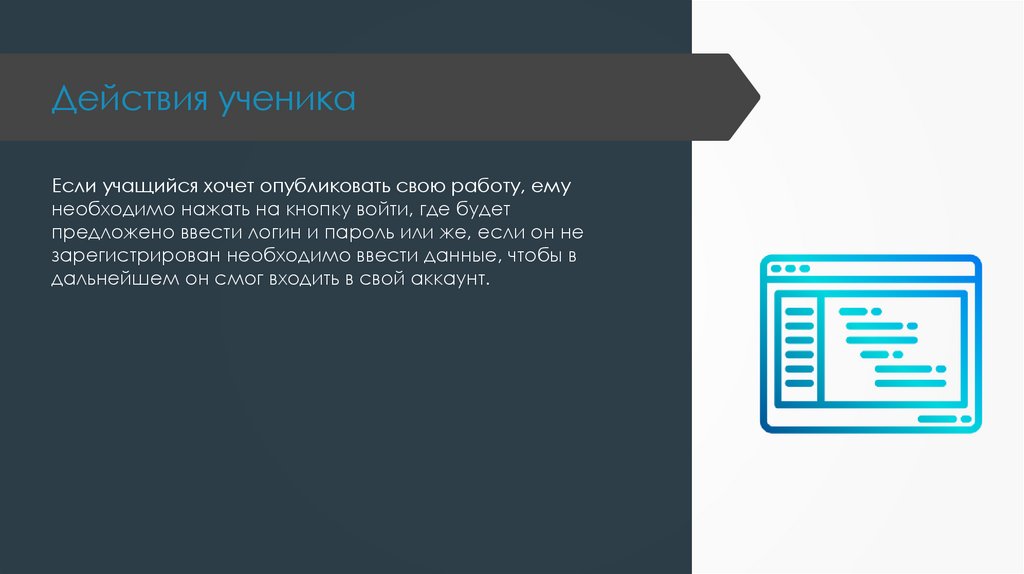 Действия ученикаЕсли учащийся хочет опубликовать свою работу, ему