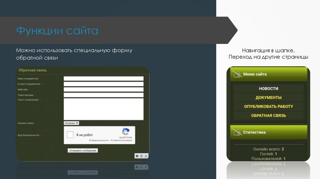 Функции сайтаМожно использовать специальную форму