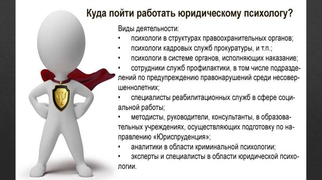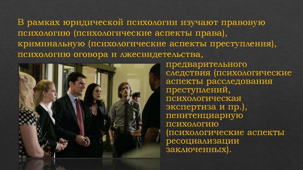 В рамках юридической психологии изучают правовуюпсихологию (психологические аспекты права),