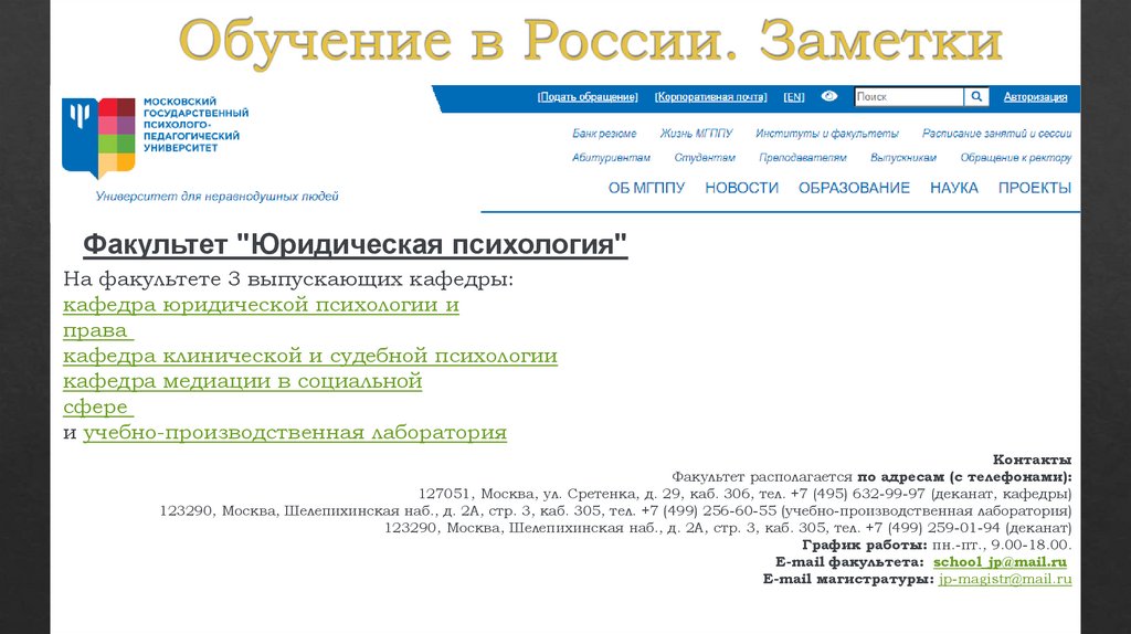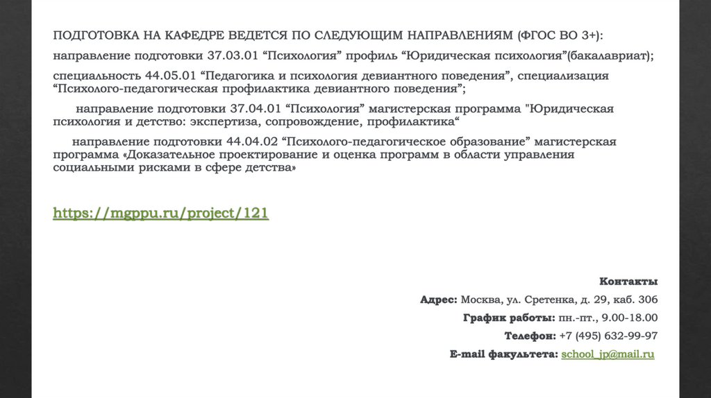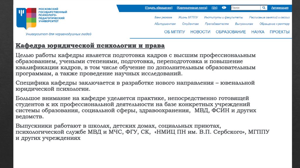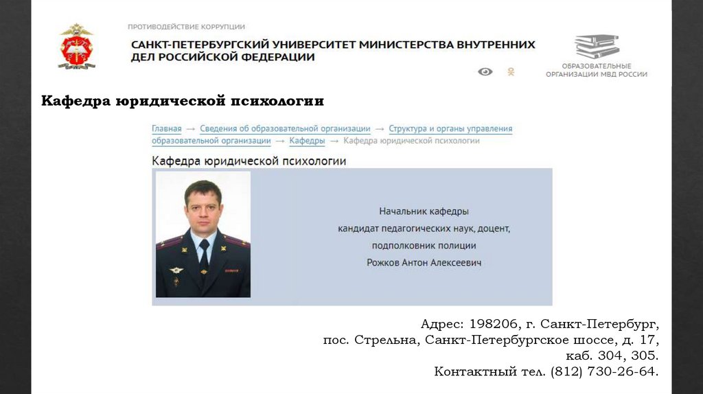 Кафедра юридической психологииАдрес: 198206, г. Санкт-Петербург,