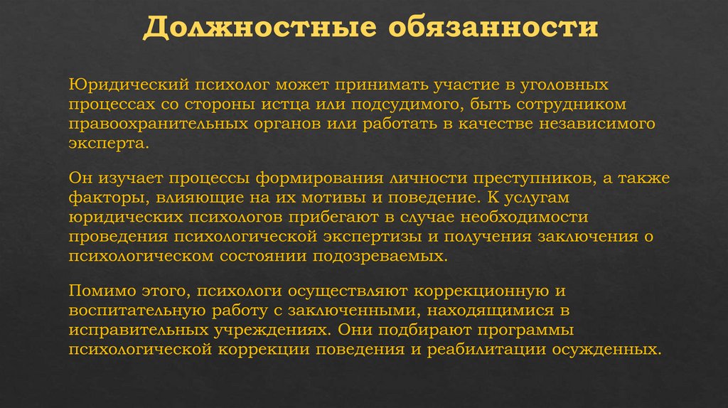 организациях (МВД, ФСИН и т.д.) в качестве эксперта. Также возможно