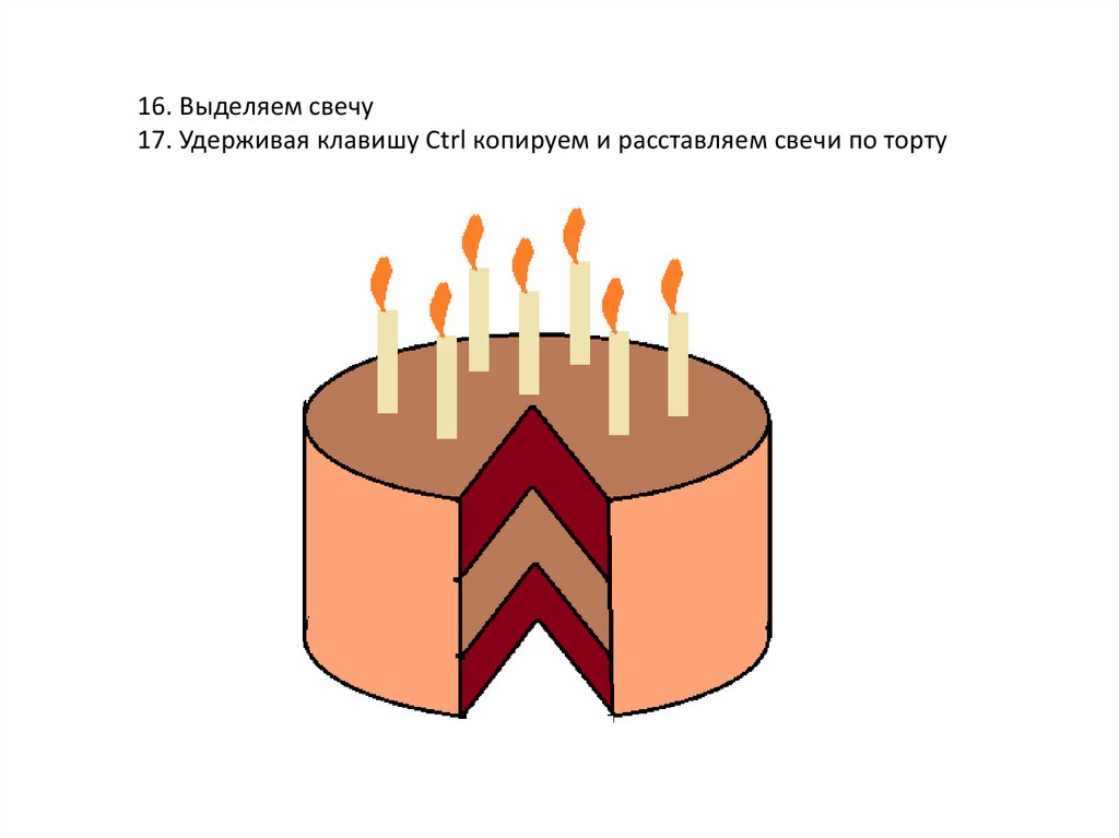16. Выделяем свечу17. Удерживая клавишу Ctrl копируем и расставляем свечи по торту