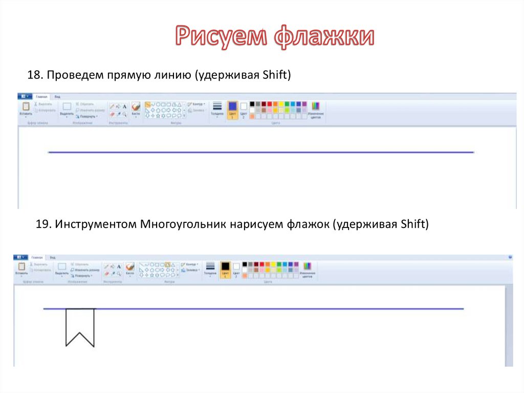 18. Проведем прямую линию (удерживая Shift)19. Инструментом Многоугольник нарисуем флажок (удерживая Shift)