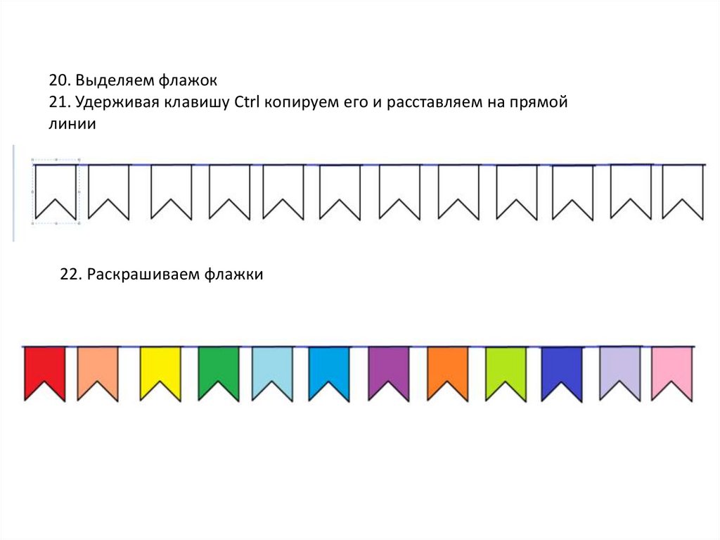 20. Выделяем флажок21. Удерживая клавишу Ctrl копируем его и расставляем на прямой
