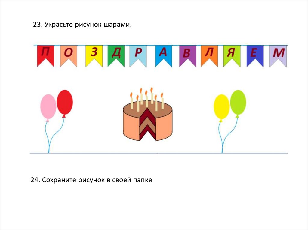23. Украсьте рисунок шарами.24. Сохраните рисунок в своей папке