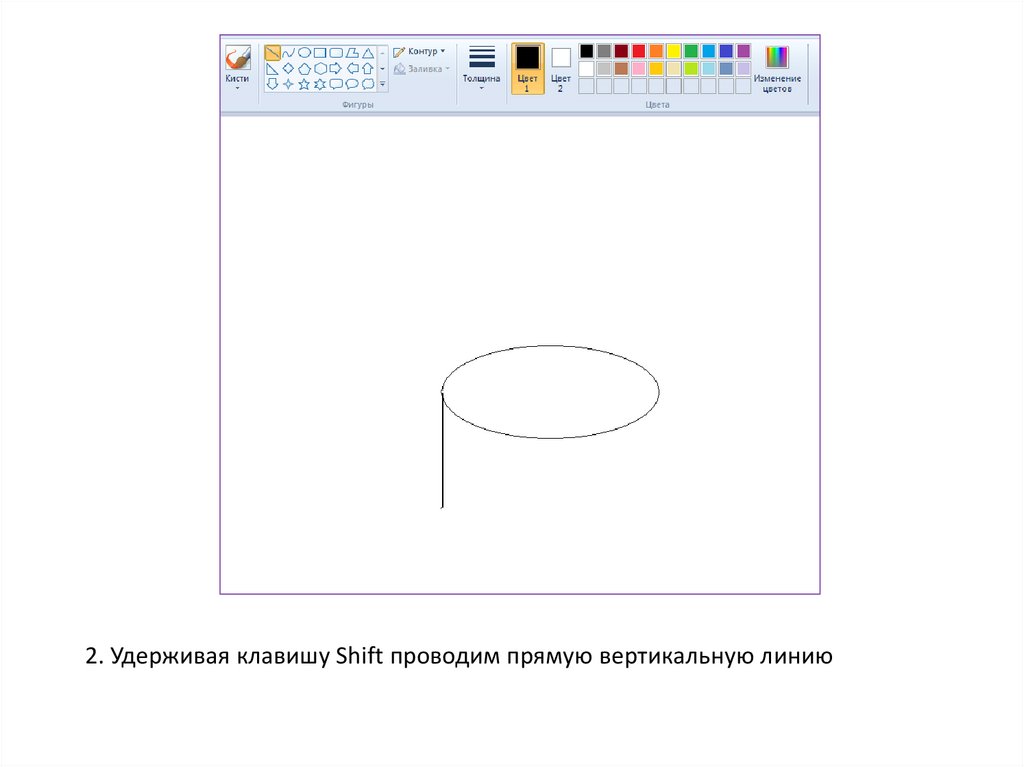 2. Удерживая клавишу Shift проводим прямую вертикальную линию5.