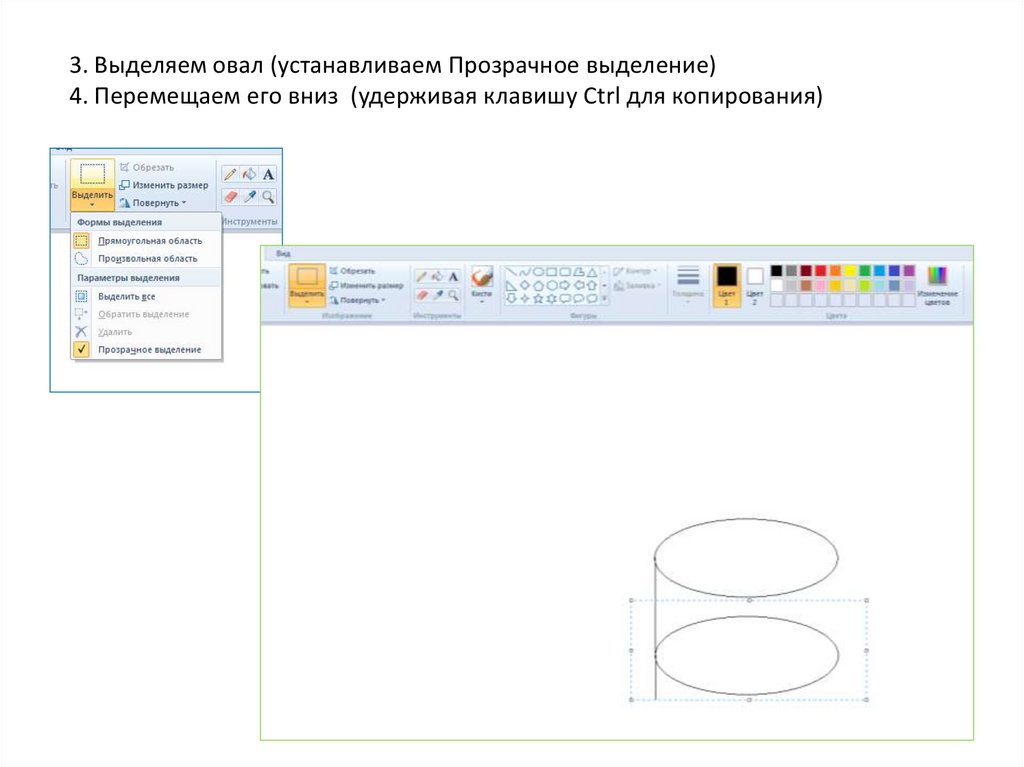 3. Выделяем овал (устанавливаем Прозрачное выделение)4. Перемещаем его вниз (удерживая клавишу Ctrl для копирования)