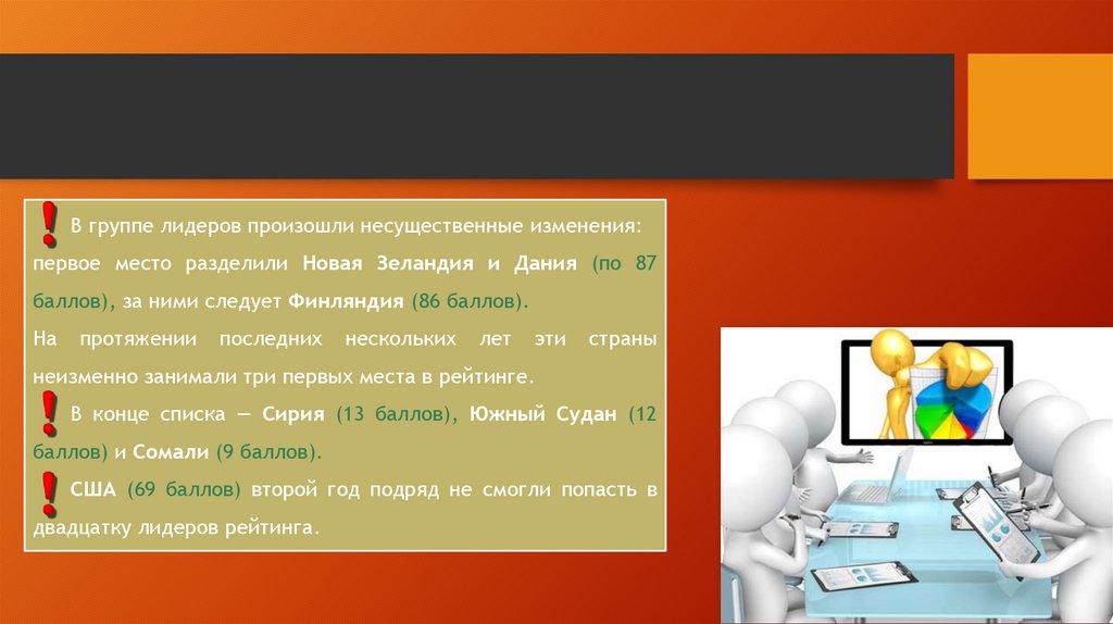 В группе лидеров произошли несущественные изменения:первое место разделили Новая Зеландия и Дания (по 87