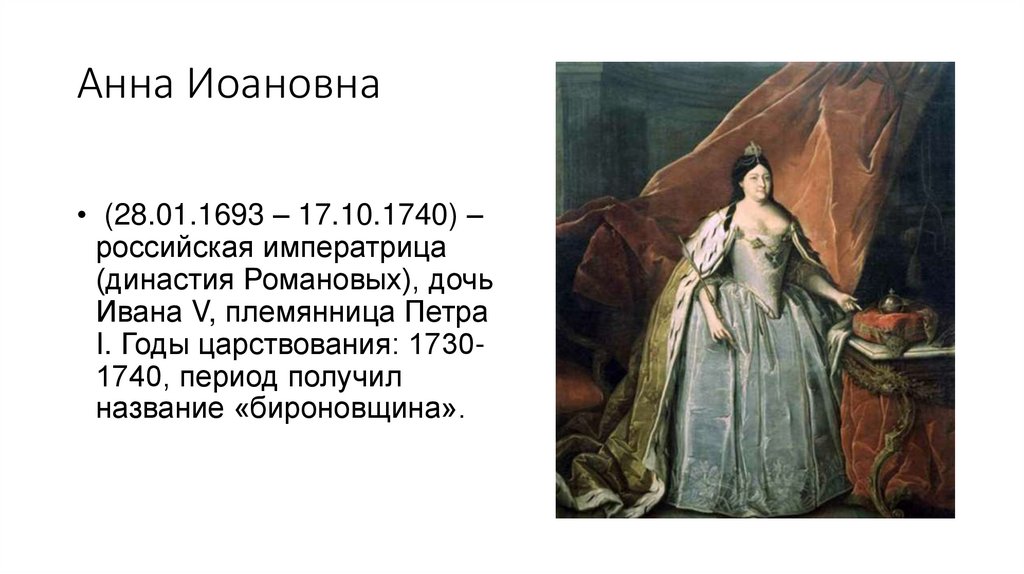 Анна Иоановна• (28.01.1693 – 17.10.1740) –