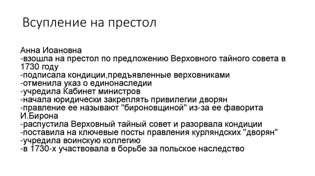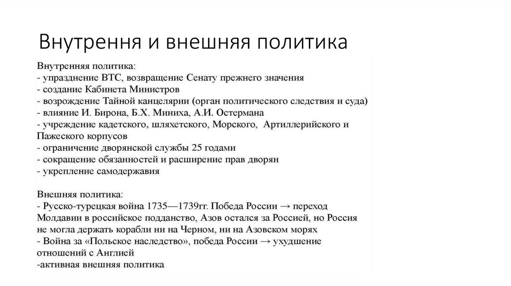 -правление ее называют "бироновщиной" из-за ее фаворита
