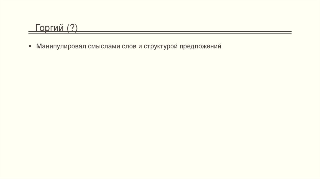 Горгий (?)Манипулировал смыслами слов и структурой предложений