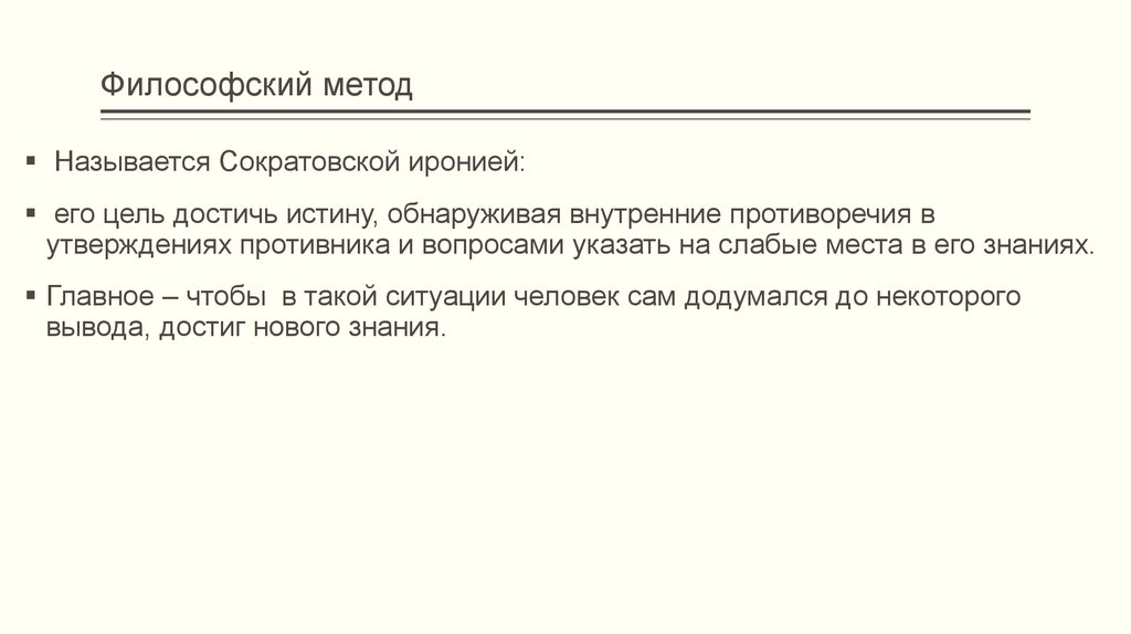 его цель достичь истину, обнаруживая внутренние противоречия в