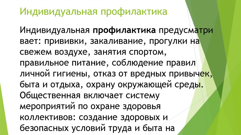 Индивидуальная профилактикаИндивидуальная профилактика предусматри