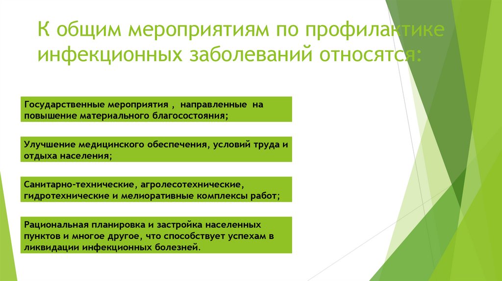 К общим мероприятиям по профилактикеинфекционных заболеваний относятся: