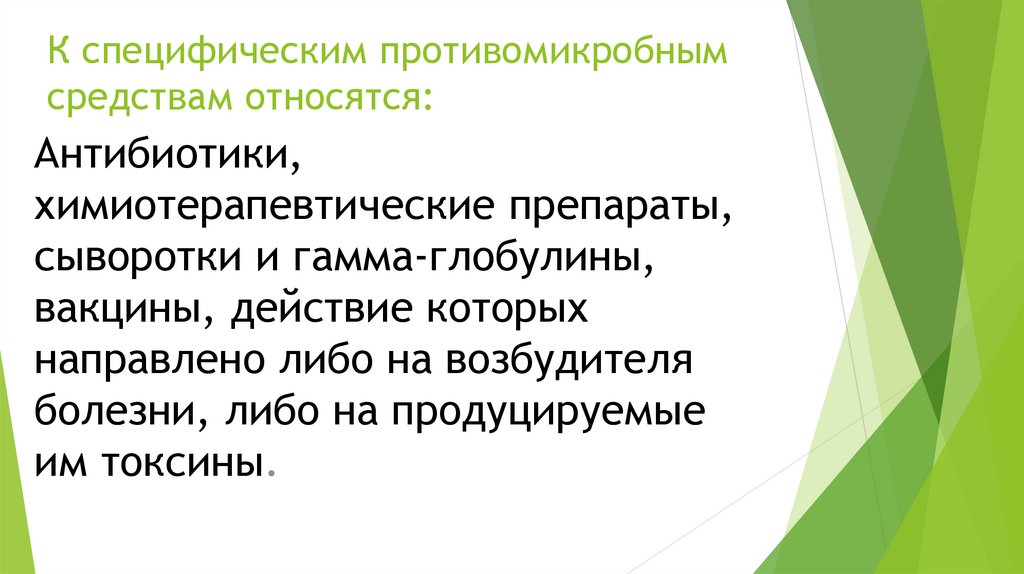 К специфическим противомикробнымсредствам относятся: