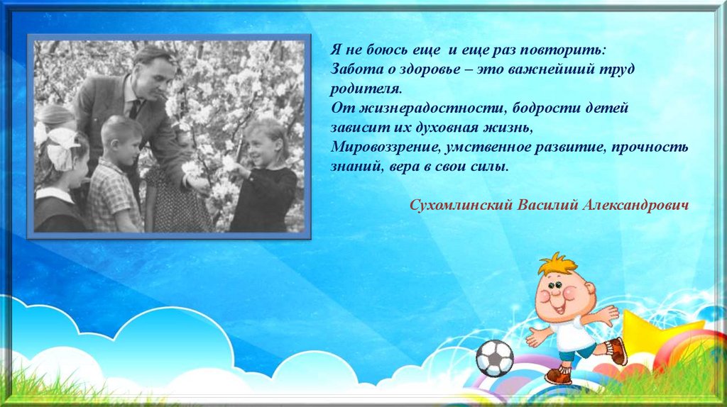 Я не боюсь еще и еще раз повторить:Забота о здоровье – это важнейший труд