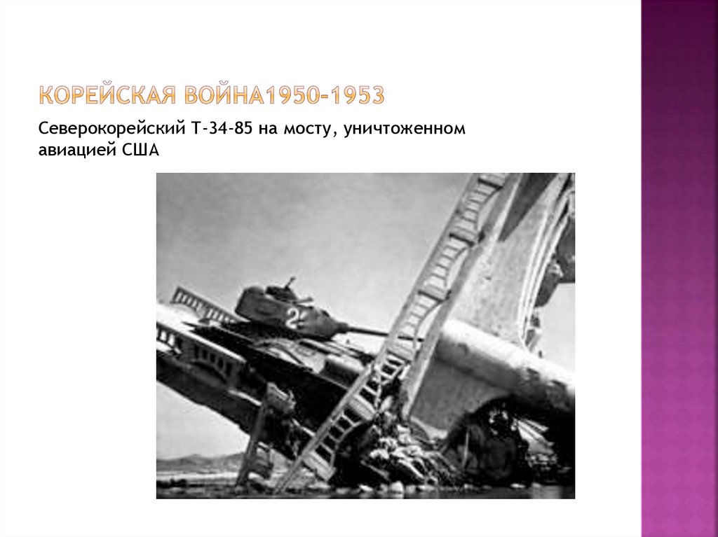 Северокорейский Т-34-85 на мосту, уничтоженномавиацией США