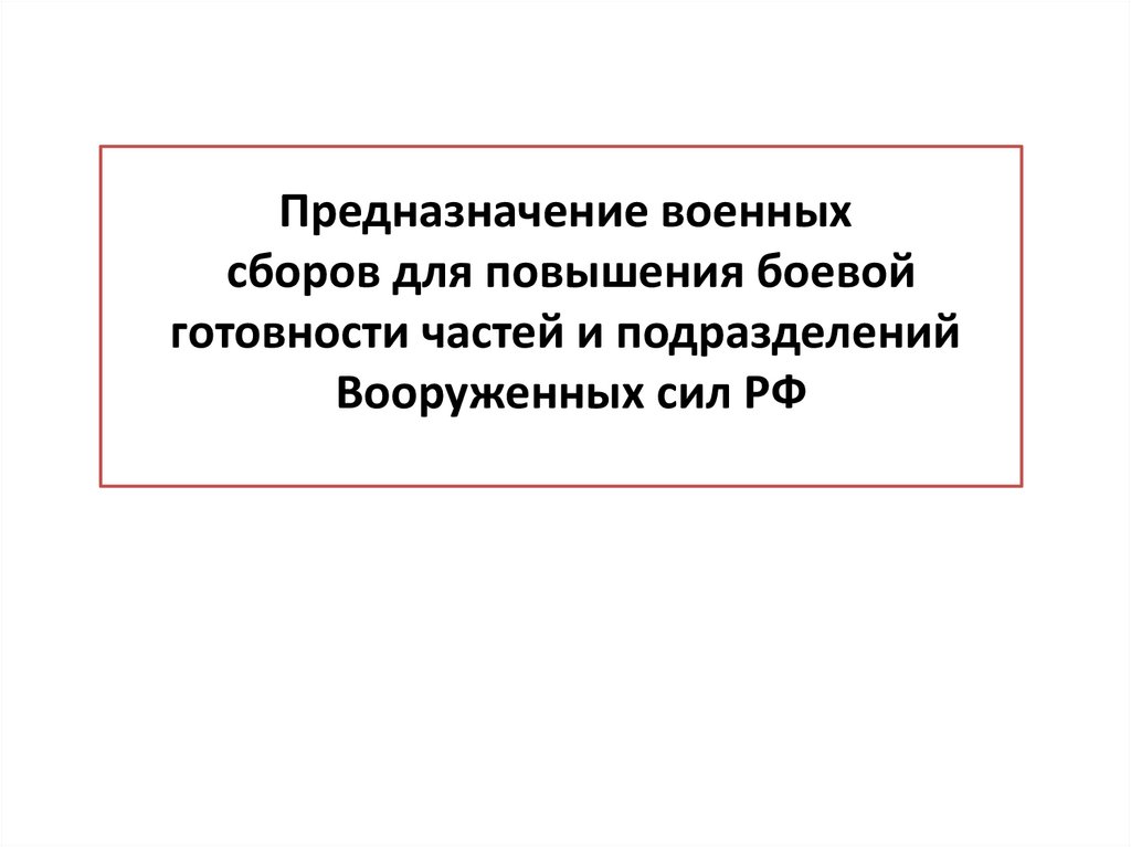 Предназначение военных сборов для повышения боевой готовности частей и подразделений Вооруженных сил РФ