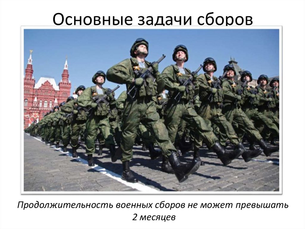 Основные задачи сборовПродолжительность военных сборов не может превышать