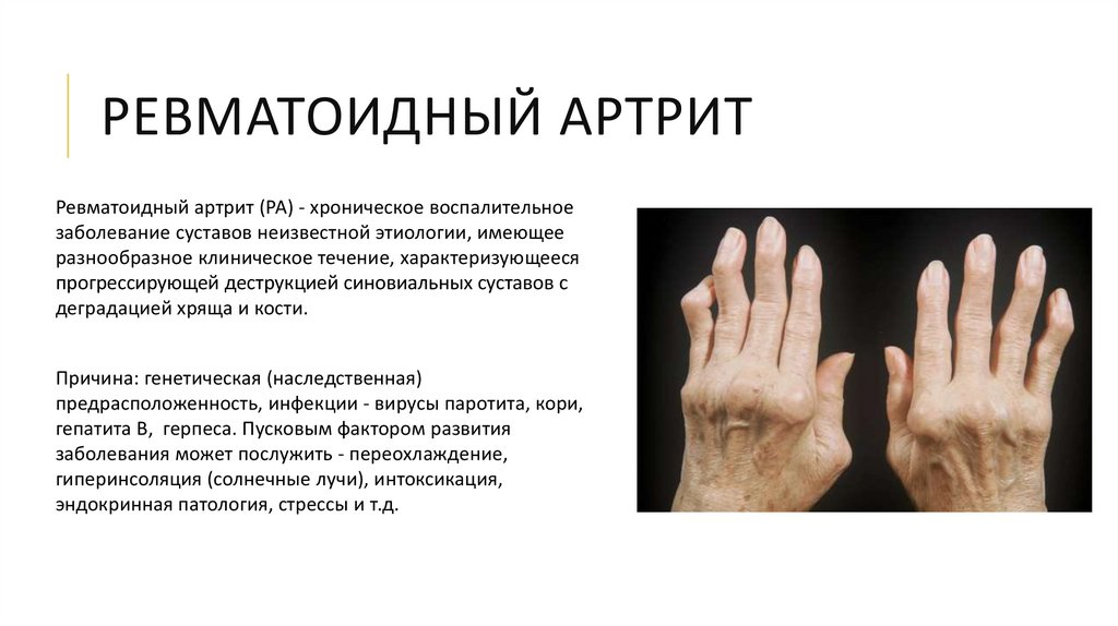 РЕВМАТОИДНЫЙ АРТРИТРевматоидный артрит (РА) - хроническое воспалительное