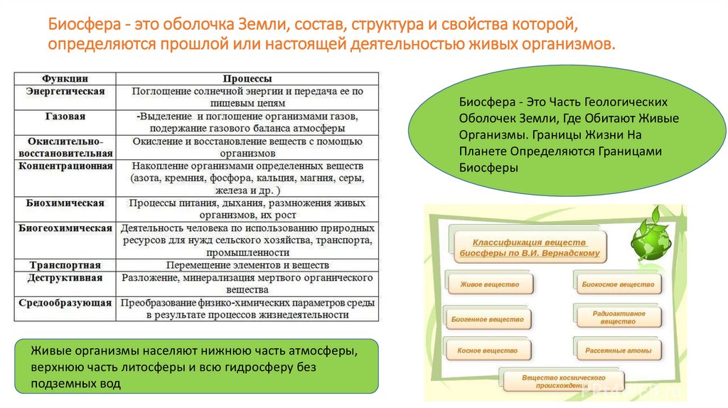 Биосфера - это оболочка Земли, состав, структура и свойства которой,определяются прошлой или настоящей деятельностью живых организмов.