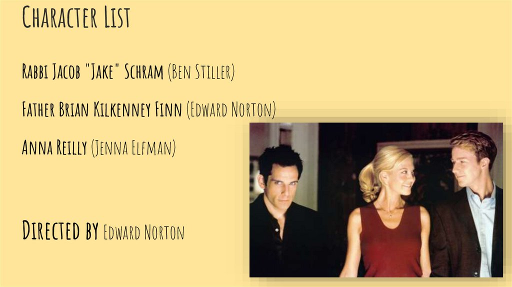 Character ListRabbi Jacob "Jake" Schram (Ben Stiller)