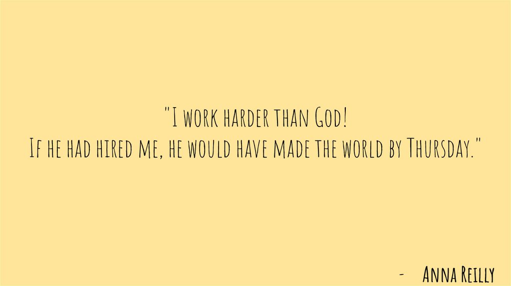 "I work harder than God!If he had hired me, he would have made the world by Thursday."