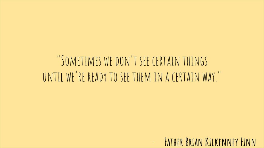 "Sometimes we don't see certain thingsuntil we're ready to see them in a certain way."