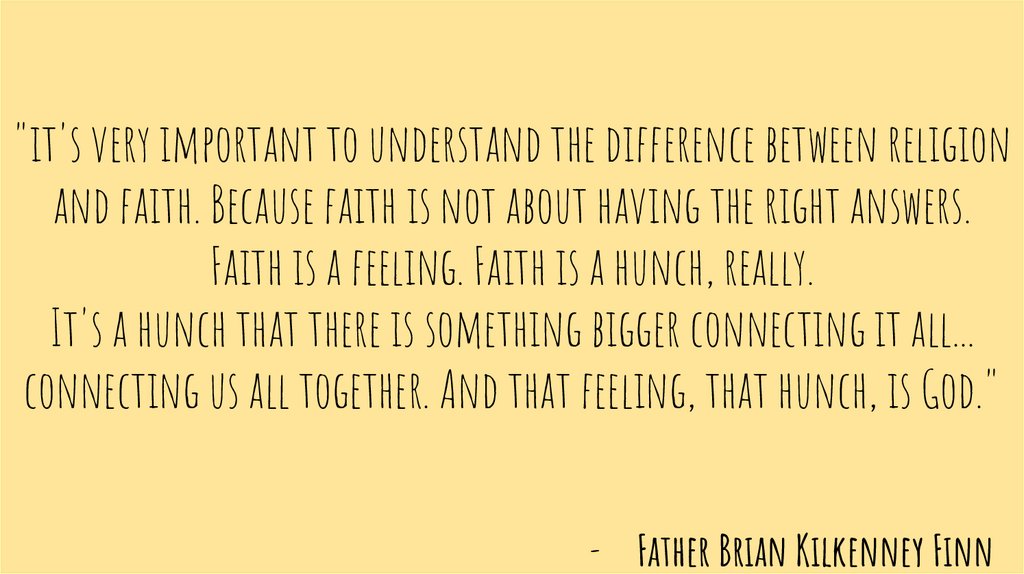 "it's very important to understand the difference between religionand faith. Because faith is not about having the right answers.