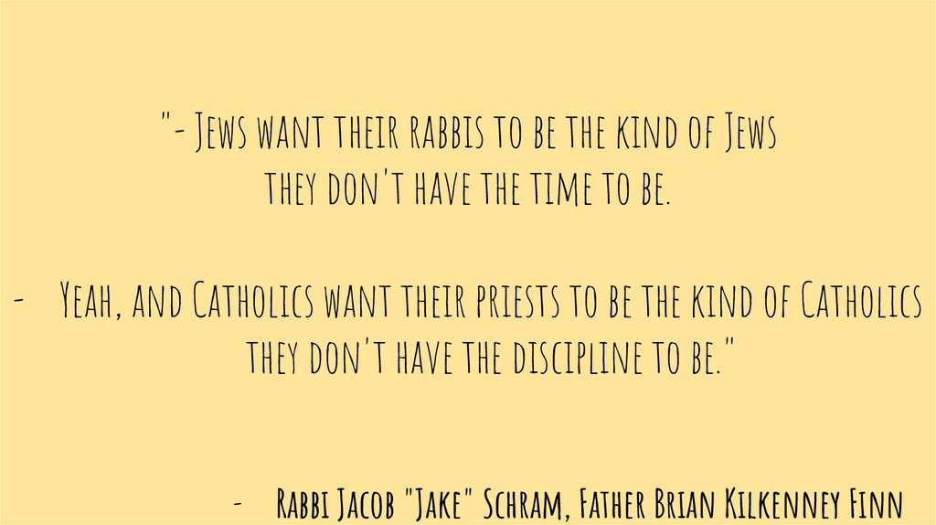 "- Jews want their rabbis to be the kind of Jewsthey don't have the time to be.