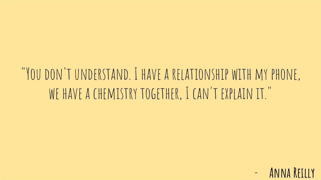 "You don't understand. I have a relationship with my phone,we have a chemistry together, I can't explain it."