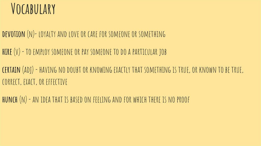 Vocabularydevotion (n)- loyalty and love or care for someone or something